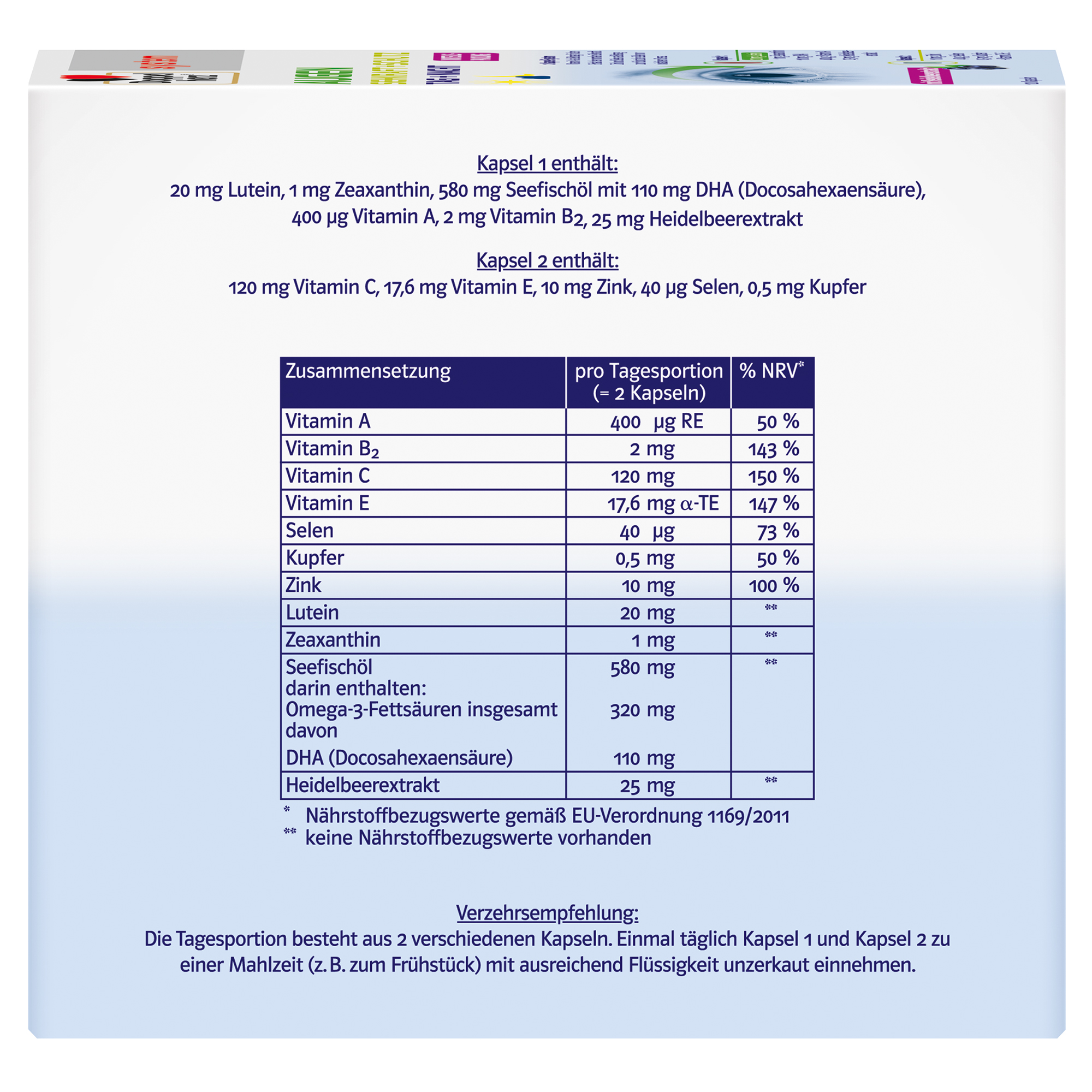 mg Lutein, 1 mg Zeaxanthin und 25 mg Heidelbeerextrakt. Für den