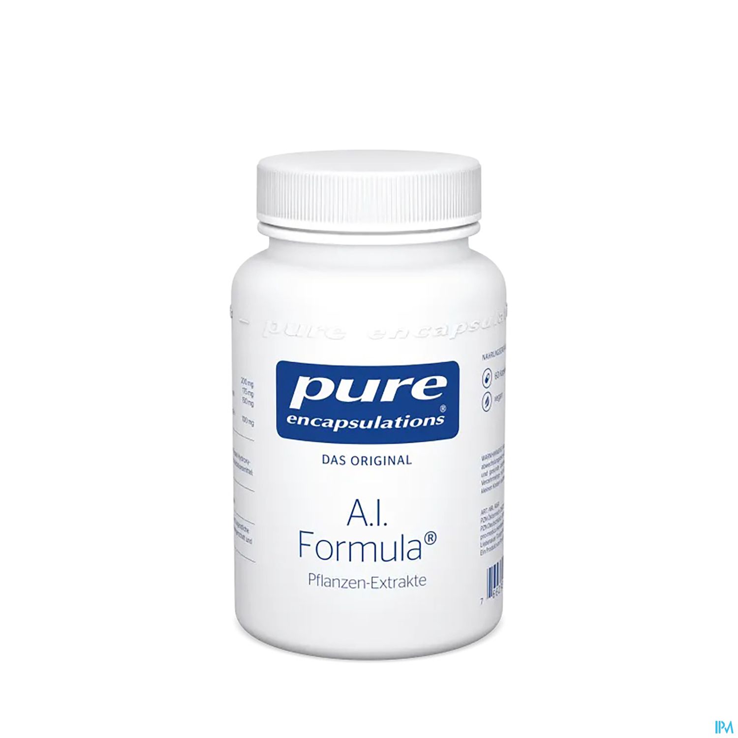 Pure Encapsulations A.I. Formula besteht aus verschiedenen standardisierten Pflanzenextrakten, die sich optimal in ihren Eigenschaften ergänzen. Wie alle Pflanzenextrakte von Pure Encapsulations werden auch die Extrakte A.I. Formula unter anderem auf 70 verschiedene Pflanzenschutzmittel getestet. Das stellt sicher, dass das Produkt frei von Pestizid-Rückständen ist.
