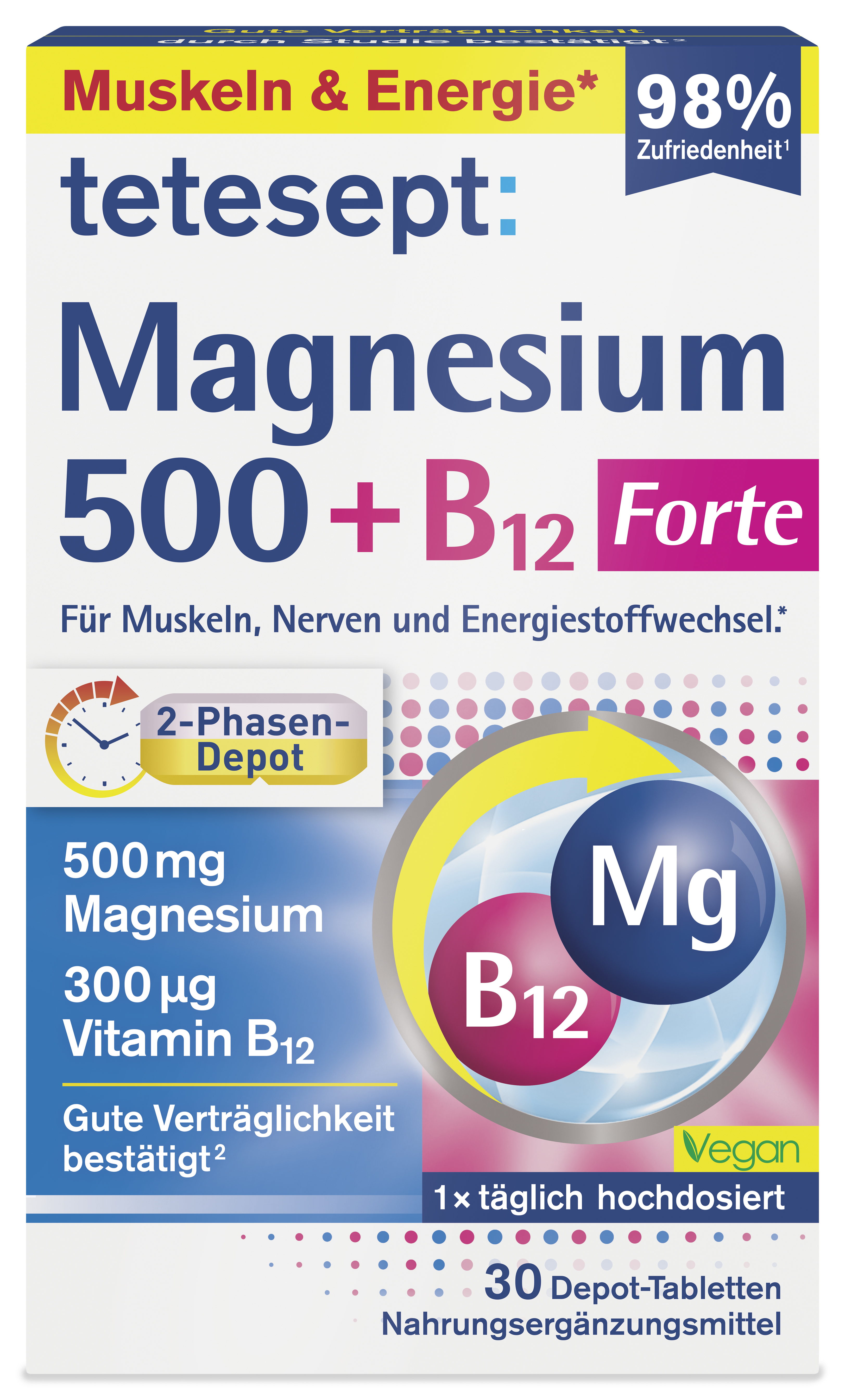 tetesept Magnesium 500+B12 2-Phasen-Depot aus hoch dosiertem